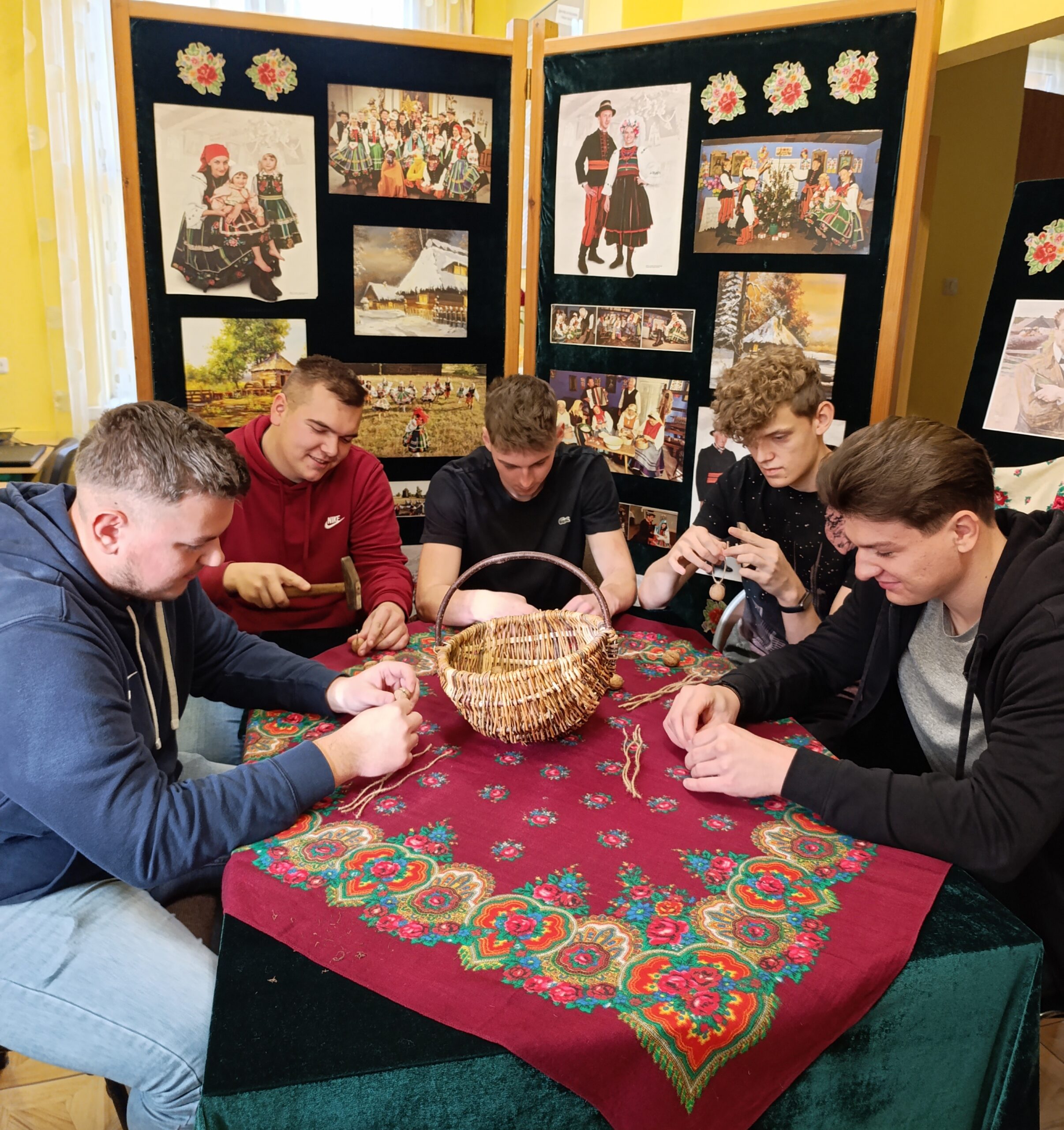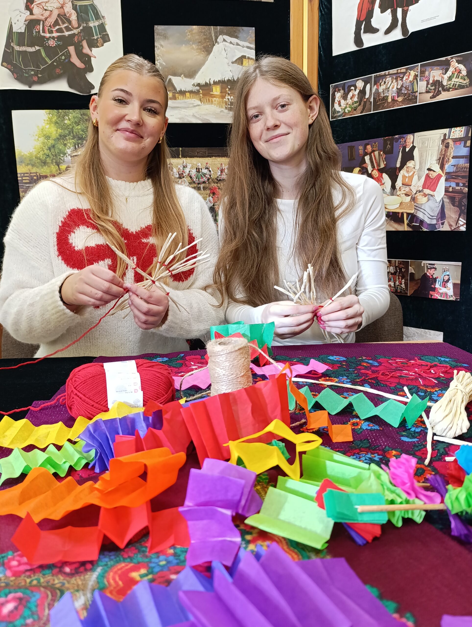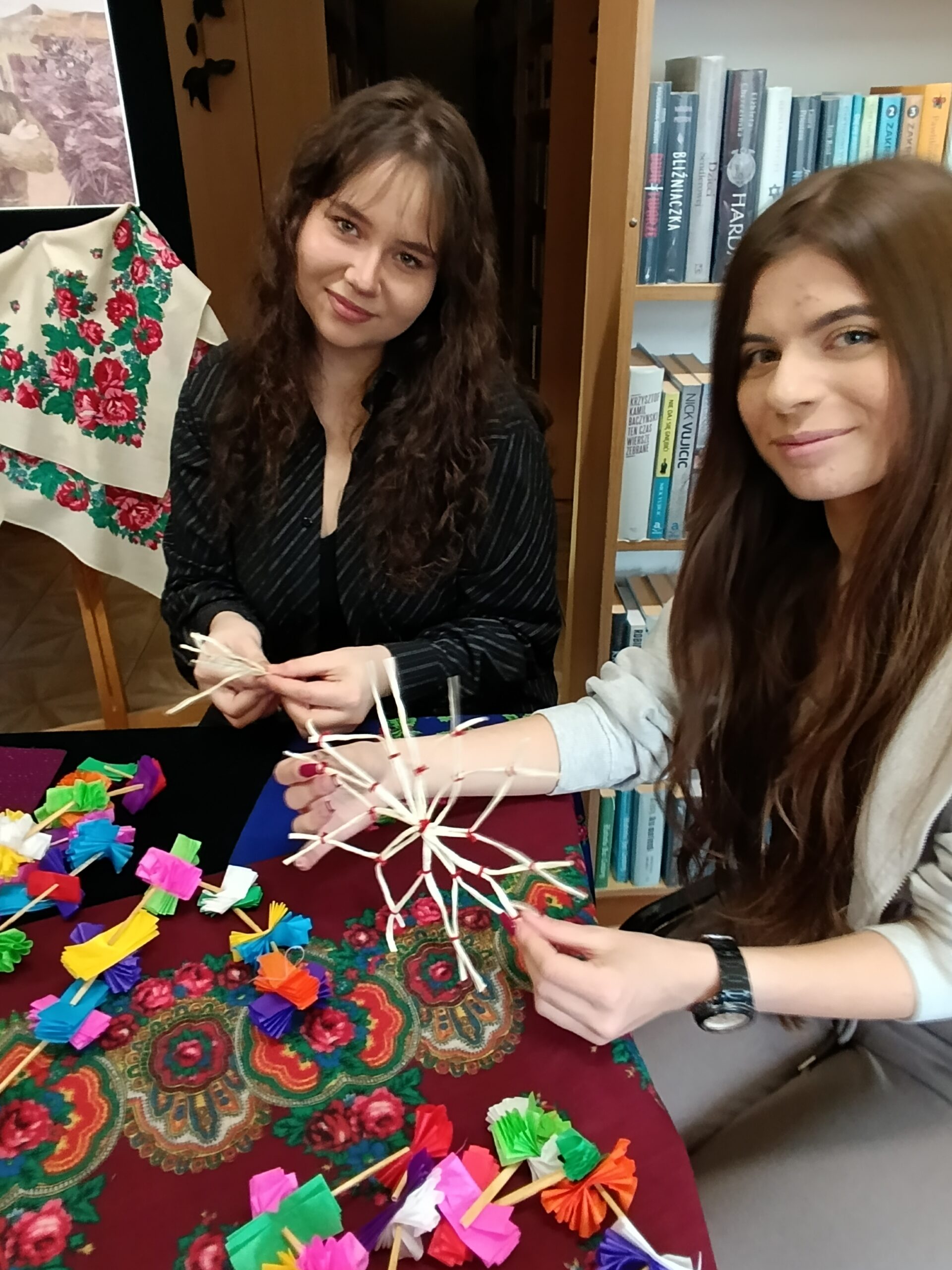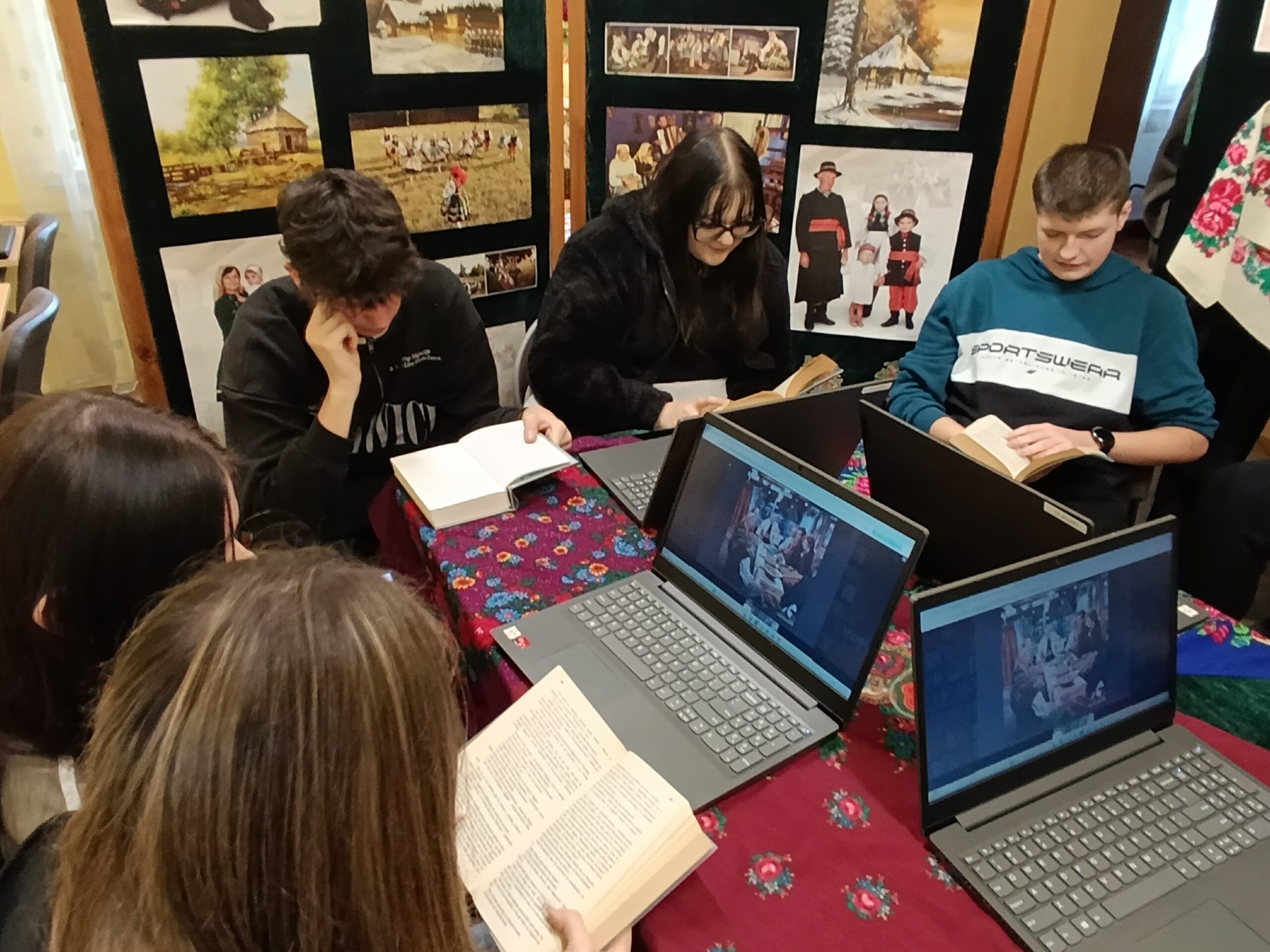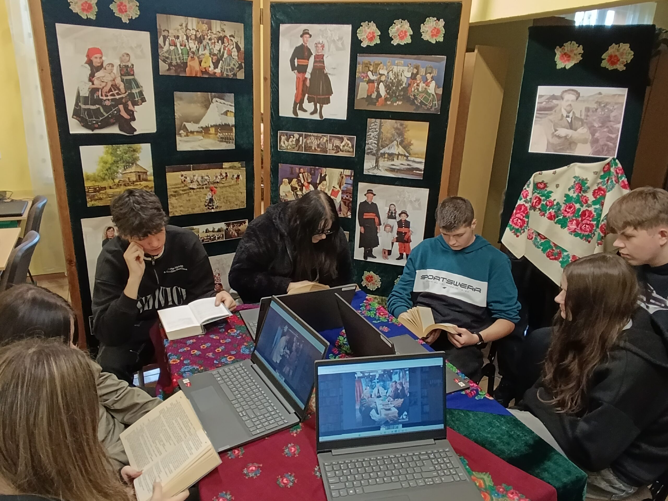 W okresie przedświątecznym, biblioteka szkolna stała się miejscem pełnym barw i kolorytu ludowego. W związku z obchodami Roku Władysława Stanisława Reymonta – polskiego noblisty, została przygotowana ekspozycja fotograficzna, która odzwierciedlała klimat dawnej polskiej wsi ukazanej w Chłopach. W tej nastrojowej scenerii młodzież wykonywała tradycyjne dekoracje choinkowe przypominając, że choć wiele elementów kultury ludowej stopniowo odchodzi w przeszłość, nie zostaje zapomniane. Uczniowie klasy pierwszej czytali fragmenty powieści Chłopi poświęcone świątecznym zwyczajom, a także oglądali fotosy z filmowych ekranizacji, które pozwoliły jeszcze pełniej zrozumieć bogactwo obrzędów opisanych przez Reymonta, który wciąż inspiruje, zachwyca i uczy szacunku do własnych korzeni. Projekt został zrealizowany przez uczniów klasy 5TO i 1BR wraz z p. Anną Kowalską, p. Maritą Połeć i p. Karoliną Popłońską.