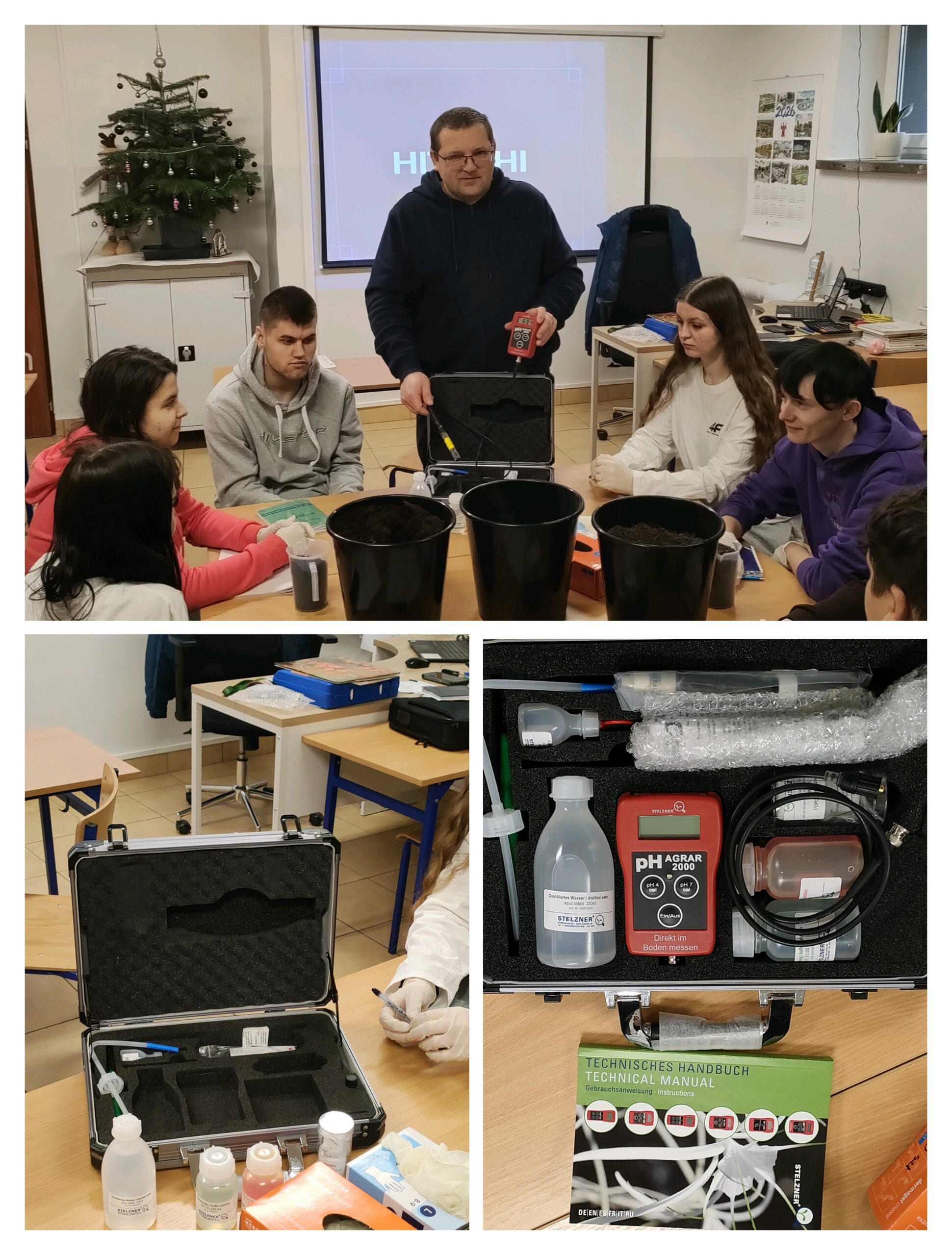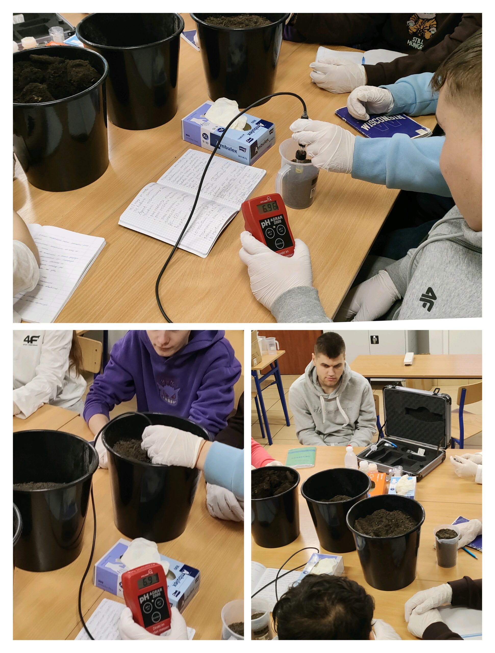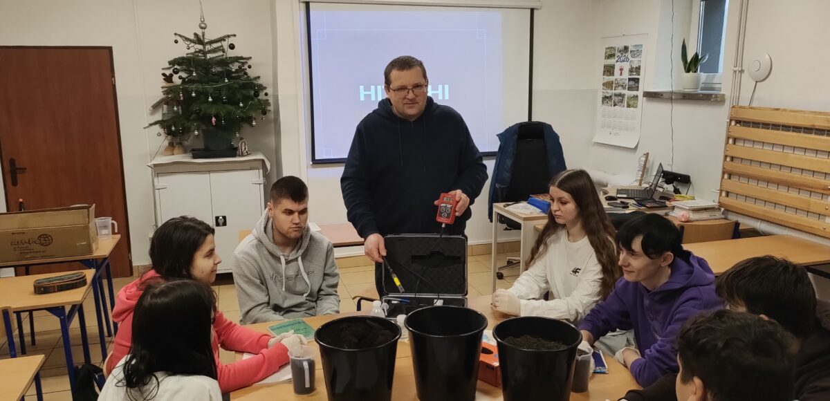 Do dyspozycji uczniów jest stacja pogodowa, umożliwiająca bieżącą obserwację warunków atmosferycznych oraz analizę ich wpływu na uprawy. Zajęcia praktyczne wzbogaca także walizka ekobadacza, wykorzystywana do obserwacji oraz badania gleby i wody, co pozwala na ocenę stanu środowiska i prowadzenie prostych analiz terenowych. Ponadto uczniowie korzystają z testera odczynu gleby pH Agrar 2000, dzięki któremu mogą precyzyjnie określać pH gleby i dostosowywać warunki upraw do wymagań poszczególnych roślin.