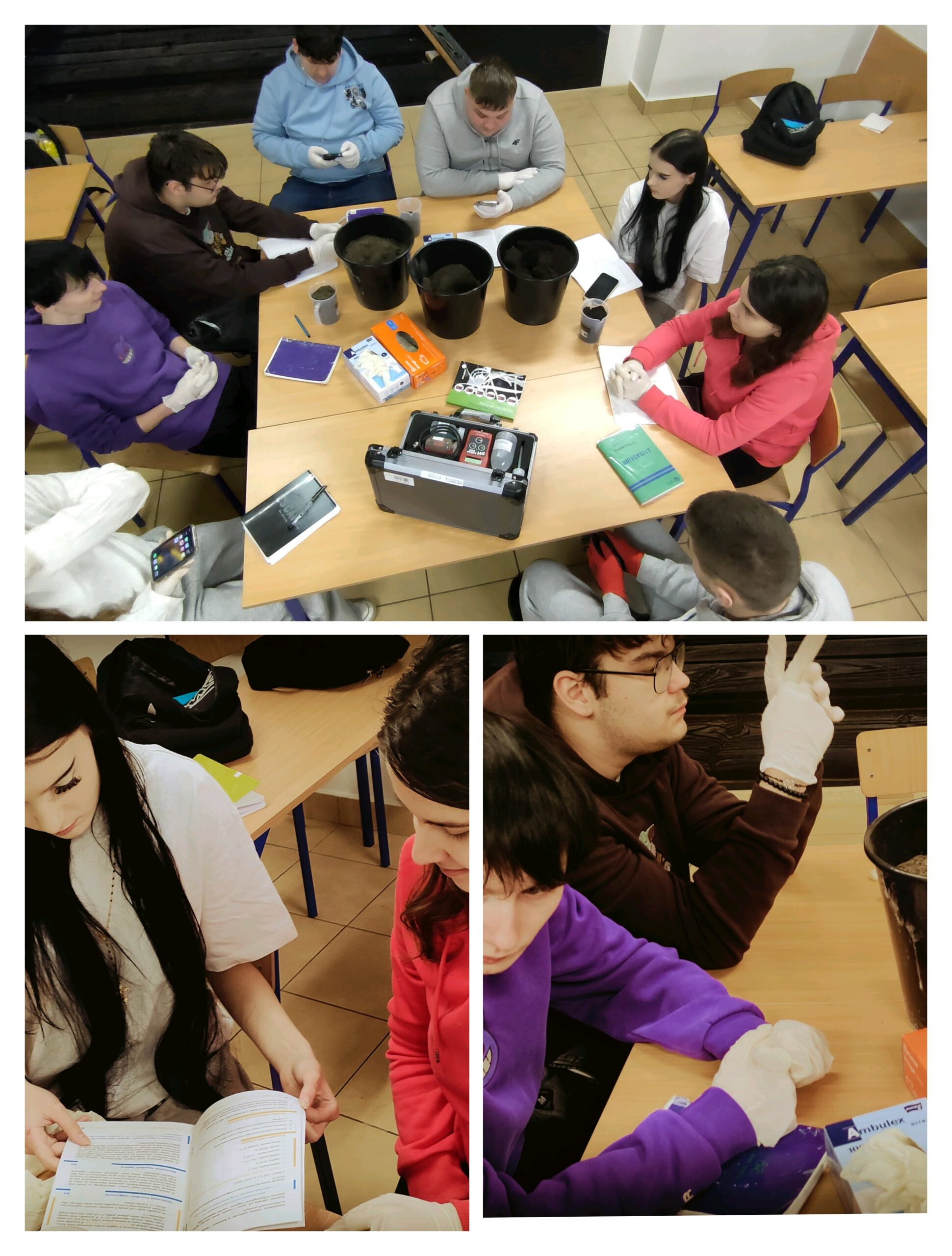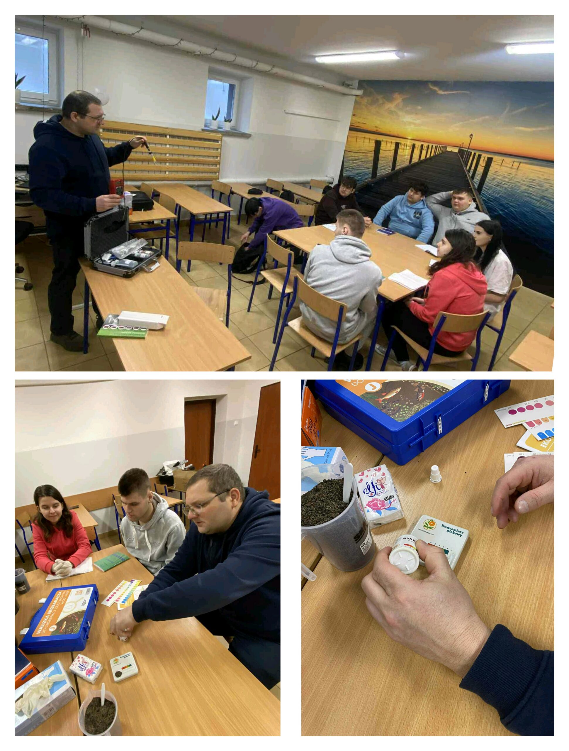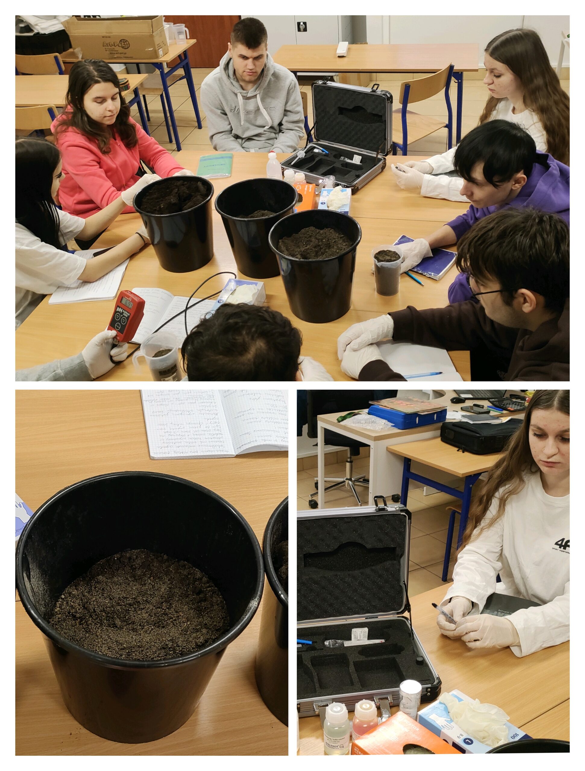 Do dyspozycji uczniów jest stacja pogodowa, umożliwiająca bieżącą obserwację warunków atmosferycznych oraz analizę ich wpływu na uprawy. Zajęcia praktyczne wzbogaca także walizka ekobadacza, wykorzystywana do obserwacji oraz badania gleby i wody, co pozwala na ocenę stanu środowiska i prowadzenie prostych analiz terenowych. Ponadto uczniowie korzystają z testera odczynu gleby pH Agrar 2000, dzięki któremu mogą precyzyjnie określać pH gleby i dostosowywać warunki upraw do wymagań poszczególnych roślin.